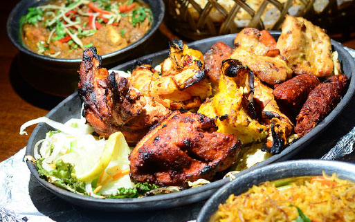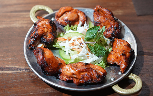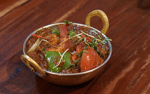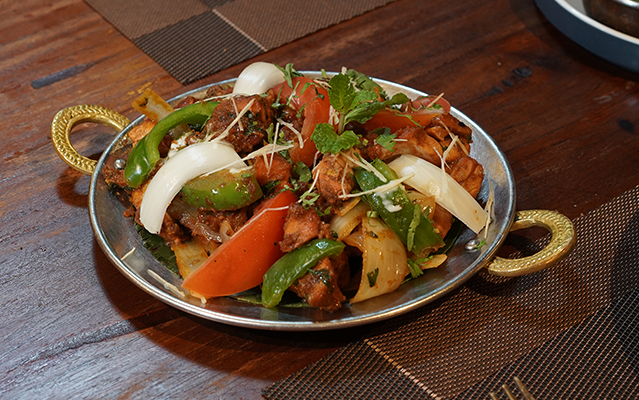 The very famous tandoor chicken sliced and prepared in our chef’s mixture of green pepper onion and herbs