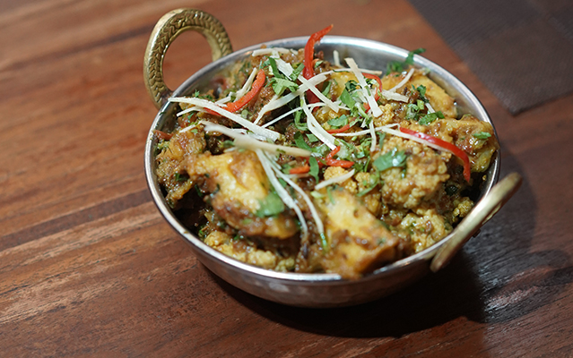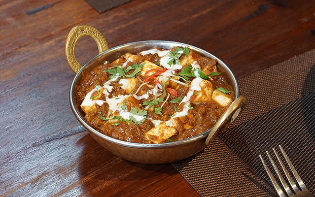 Pieces of cottage cheese sauteed and simmered in rich onion and tomato sauce, made with cardamom and butter