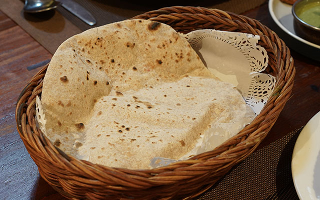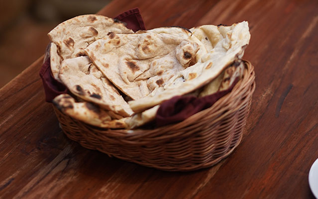 Choice of 4 different bread items from our selection : plain, garlic, butter naan, roti, chapati or paratha