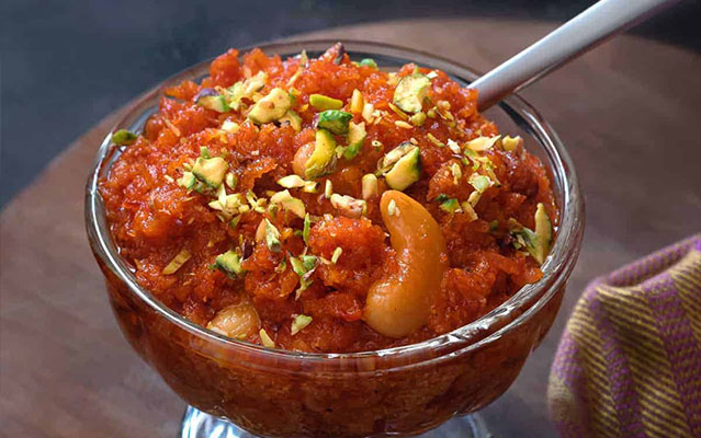 An exotic preparation of carrots with milk, garnished with raisins and nuts