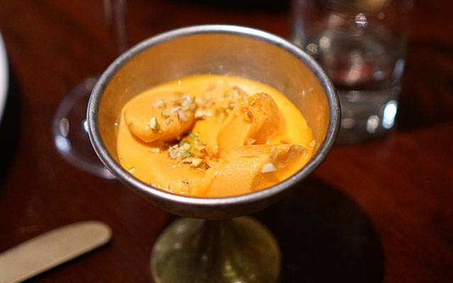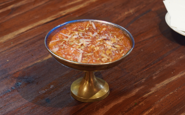 Rich traditional dessert made from moon dal (yellow lentils), finished with dry nuts