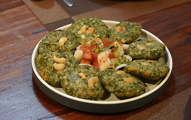 Deep fried spinach, cottage cheese and potato patties, spiced with aromatic herbs