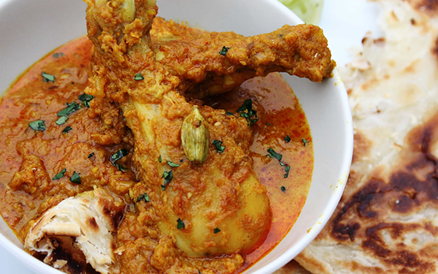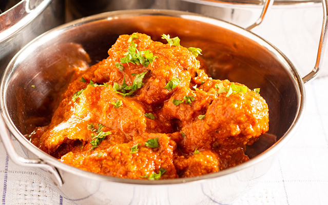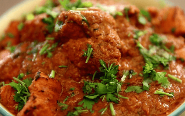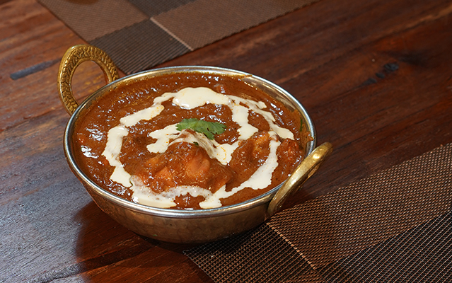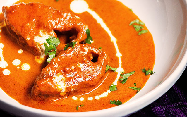 Boneless pieces of chicken sauteed and simmered in rich onion and tomato sauce with cardamom and butter