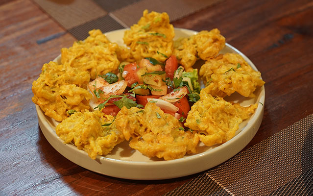 Tasty sliced onions mixed in gram flour batter, deep fried and served with green chutney
