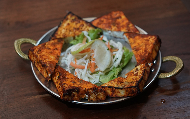 Pieces of cottage cheese marinated in india spices, yoghurt mix, grilled in tandoor