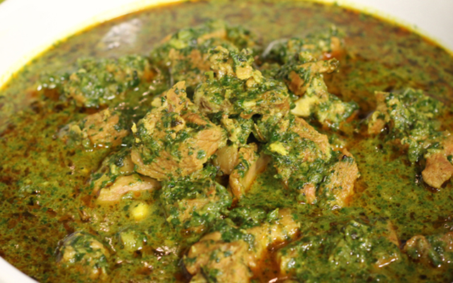 Lamb chunks cooked in a mild and aromatic paste of spinach and green coriander
