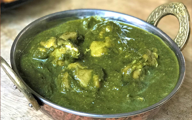 Boneless chicken cooked in an aromatic paste of spinach and garam masala