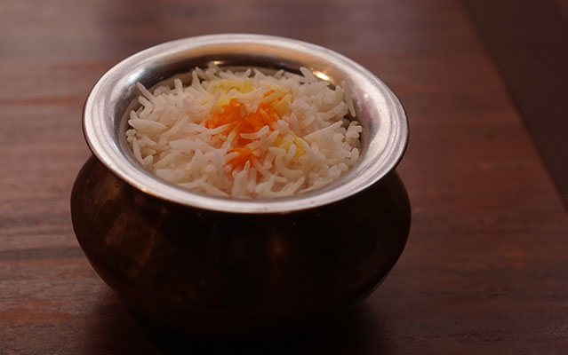 Fluffy white long grained rice steamed to perfection with a tinge of saffron