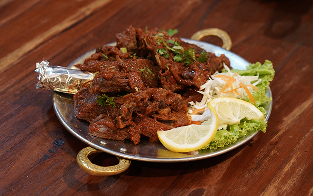5 Hours braised whole leg of lamb marinated with whole Indian spices, finished in tandoor.