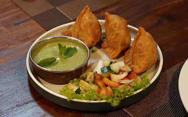 The ever popular pyramids, made with spiced potatoes stuffed in flaky pastry and deep fried